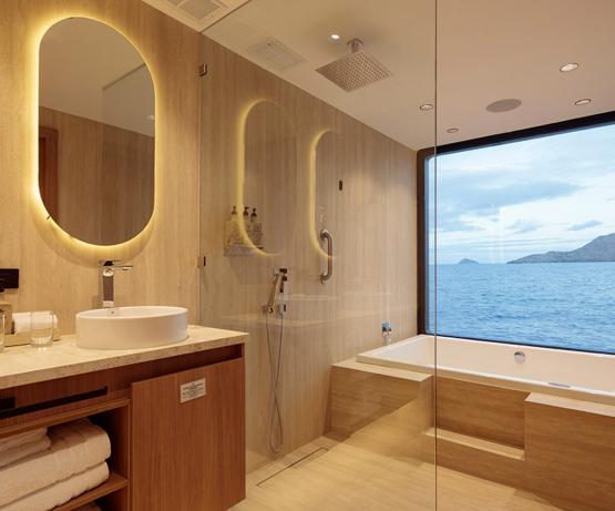 Toutes les suites disposent d'un balcon privé et d'un jacuzzi privé donnant sur l'océan. Profitez d’une carte de boissons de qualité supérieure incluse durant votre séjour. Détendez-vous après une journée de découverte des îles grâce à un service de majordome ou après une purification dans le hammam avec vue sur les magnifiques paysages des Galápagos.