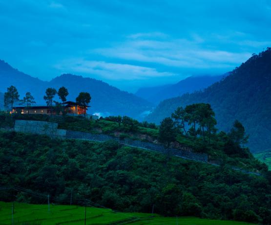 Niché au fin fond de la luxuriante vallée de Punakha, ce boutique-hôtel exclusif offre une retraite paisible et luxueuse à ses visiteurs. Son design minimaliste se fond parfaitement dans le panorama de cet endroit d'exception.