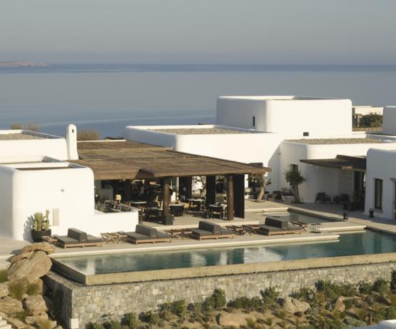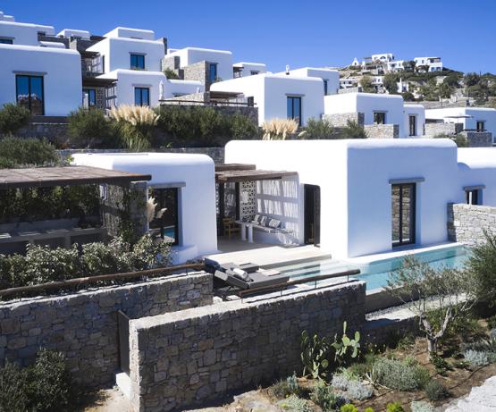 Kalesma Mykonos est un sanctuaire contemporain niché sur la colline d'Aleomandra, entre la baie d'Ornos et Agios. Il offre un haut niveau d'intimité parmi ses suites et villas de luxe, toutes dotées de terrasses privées et de piscines à débordement chauffées. Idéalement proche de certaines des plages et attractions les plus renommées de l'île, mais suffisamment isolée pour offrir sérénité et le sentiment d'un quartier mykonien authentique, Kalesma ressemble à un village insulaire traditionnel mêlant l'ambiance locale à la haute esthétique.