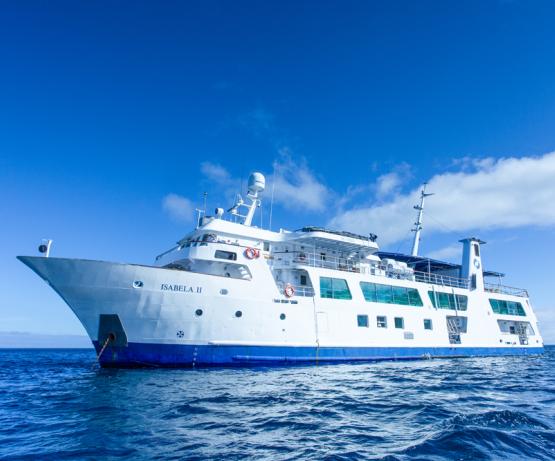Le M/V Isabella II est un yacht de première classe. Le bateau peut accueillir jusqu’à 40 passagers. Il offre 20 cabines : 1 cabine standard (env. 12 m2) pour 1 personne, 2 cabines « Classic Family » (env. 13 m2), 16 cabines « Classic » (env. 13 m2) et 1 cabine « principal/owner » (env. 19 m2). Les cabines disposent de salle de bain privée avec douche et sèche-cheveux, de la climatisation et d’un coffre-fort. Salle à manger, petite bibliothèque, boutique, infirmerie (médecin à bord), salon-bar, fitness, sundeck avec bar, jacuzzi et chaises longues. Des conférences sont données par les guides en fin de journée. Le bateau dispose d’un panga (petit bateau) à fond vitré qui vous permettra d’explorer les fonds marins sans avoir à vous mettre à l’eau. Enfants acceptés dès 6 ans.
