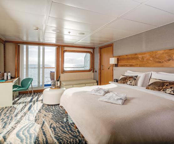 10 cabines « Balcony Suites » (env. 22 m2) avec larges fenêtres et balcon,