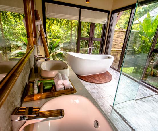 Perdu au beau milieu d'une forêt tropicale luxuriante se cache ce magnifique resort, combinaison parfaite de beauté naturelle, d'architecture laotienne et de confort moderne. Emplacement idéal pour les voyageurs en quête de nature sauvage, le resort vous offre une infinité d'activités en plein air : petite randonnée, trekking, rencontres avec l'ethnie Khmu, baignade dans les cascades, tyrolienne, balades à vélo... pour n'en citer que quelques unes.
