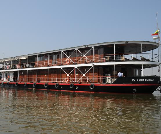 Il s'agit d'une conception radicalement nouvelle, basée sur l'ancienne classe K utilisée en Birmanie à partir des années 1880. Ce navire est le troisième Katha à naviguer sur l'Irrawaddy. Le premier a été construit à Dalla en 1887 mais a été perdu sur le Chindwin en 1889. Le deuxième a été construit par Denny of Dumbarton en 1904 et mis hors service en 1937 et le troisième a été construit par nous au Vietnam en 2012. Nous l'avons fait naviguer pendant un an sur le Mékong avant de l'envoyer en Birmanie. Avec seulement deux ponts, ces petits navires de la classe K ont un tirant d'air plus faible, ce qui leur permet de passer sous les ponts et de prétendre à un tirant d'eau plus faible, bien qu'en fait les chantiers navals vietnamiens n'y soient pas parvenus aussi bien que les chantiers birmans et que les navires de la classe K construits ultérieurement en Birmanie aient obtenu des réductions remarquables de leur tirant d'eau. L'aménagement général du Katha est singulier en ce sens qu'il supprime la salle à manger intérieure formelle. Cela a suscité de vives protestations de la part des passagers réguliers et de notre personnel. Finalement, tout le monde s'accorde à dire qu'il est bien plus agréable de manger à l'extérieur que dans une salle à manger fermée, étouffante et bruyante, et que les insectes ne sont pas si terribles que cela. Réaménagé pour les expéditions en Inde à partir de septembre 2019, nous avons réduit le nombre de cabines de seize à douze pour créer un salon/salle à manger intérieur plus grand, car les croisières hivernales en Inde peuvent être fraîches dès les premières heures.