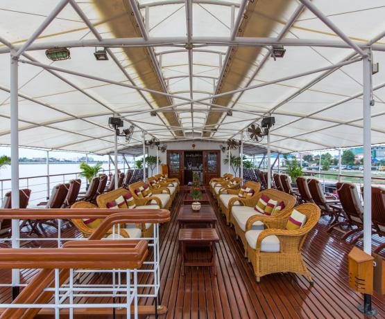 Modélisé d'après le Pandaw II et appelé à l'origine Pandaw III, le Tonle a servi pendant un an en Birmanie en 2002-2003 avant d'être remorqué sur le Mékong où il assure depuis lors un service continu entre Saigon et Kampong Cham. Avec son magnifique salon sur le pont supérieur, ses ponts d'observation et sa salle à manger, ce navire possède une riche ambiance. En 2013, il a été entièrement réaménagé et le nombre de cabines a été réduit à seulement vingt-huit afin de créer un spa et une bibliothèque sur le pont inférieur. Ce n'est pas un petit navire, mais malgré sa taille, il a un faible tirant d'eau et peut généralement remonter la rivière dans les zones de basses eaux lorsque d'autres navires sont bloqués bien en dessous. Le navire dispose de VTT de qualité pour votre exploration indépendante.