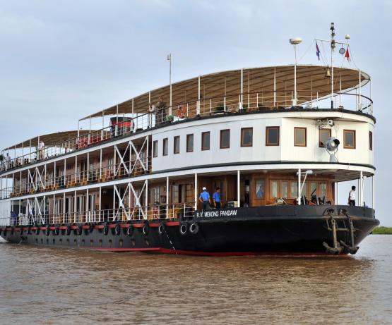 Construit à Yangon en 2002, il a fait le tour de Saigon par ses propres moyens et a connu bien des péripéties décrites dans le livre Pandaw Story de Paul Strachan. Ce navire a été conçu spécialement pour le Mékong et, contrairement aux autres navires de la classe P, il n'est pas équipé d'un pont volant. La raison en est qu'il peut passer sous un pont routier. Il est effectivement passé sous le pont lors de sa première traversée, mais c'était tellement effrayant que Paul Strachan, qui se trouvait alors sur le pont, n'a plus jamais osé tenter l'expérience. C'est ainsi que nous nous sommes retrouvés avec cet incroyable pont en teck de 750 mètres carrés, qui comporte même une table de billard grandeur nature. Le MP, comme on l'appelle affectueusement, est le navire le plus spacieux de la flotte Pandaw, avec des promenades plus larges, une salle à manger plus grande et plus d'espace public par passager que n'importe quel autre navire. C'est du sérieux ! En 2012, il a été réaménagé et les cabines du pont inférieur ont été supprimées au profit d'un spa professionnel, d'une salle de sport, d'un salon-bibliothèque et d'un bureau. Il est, à juste titre, le plus splendide des navires sur le Mékong et fait l'envie de tout ce qui passe à proximité.
